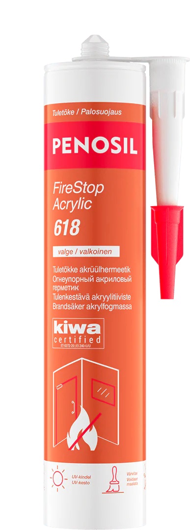 PENOSIL FireStop Acrylic 618 on värvitav hermeetik tuleklassiga tarindite avauste ja pragude täitmiseks ning tulekahju leviku tõkestamiseks.