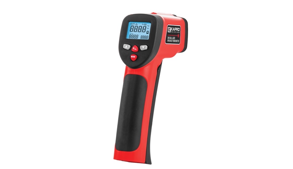 Omadused: • Kaks laserit täpsuse tagamiseks • Temperatuuri mõõtmise vahemik: -50...+650 °C (-58...+1202 °F) • Optiline eraldusvõime: 12:1 suhe • Mälufunktsioon – kuni 20 näitu • Reguleeritavad kõrged ja madalad sättepunktid koos helisignaalidega • Lukustusfunktsioon pidevaks näidu lugemiseks • Temperatuurinäidud °C või °F • Automaatne väljalülitus • Kaasas 9 V patarei