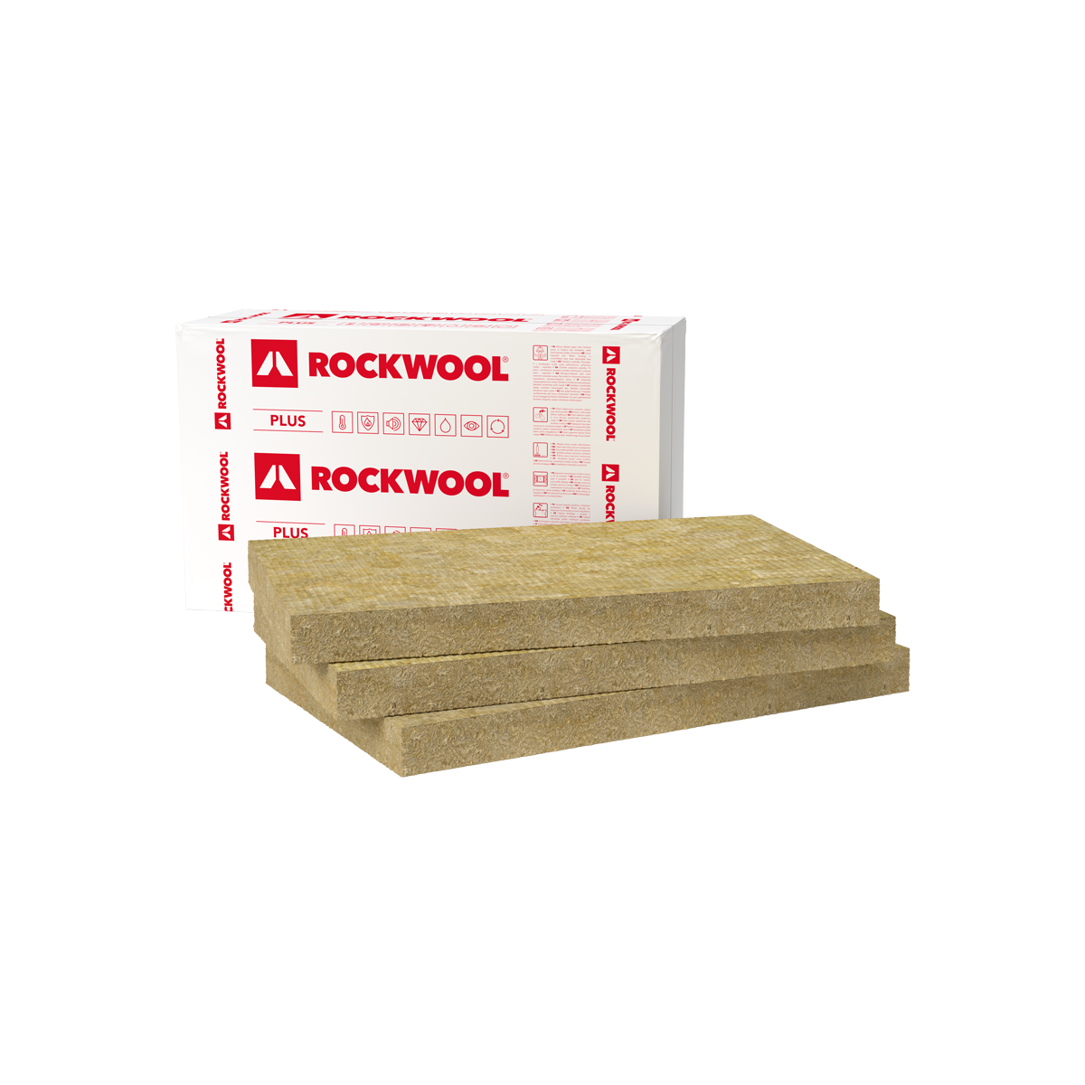 ROCKMIN PLUS pooljäik akustiline kivivillaplaadid on optimaalsete soojus- ja heliisolatsiooniomaduste ning hinna ja kvaliteedi suhtega soojustusplaadid.