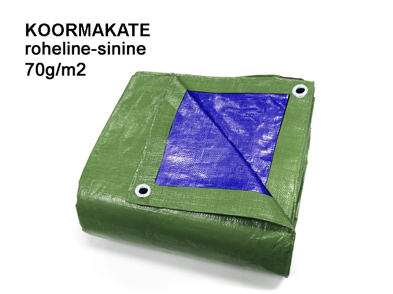 Koormakate on mõeldud erinevate kaupade, ehitusmaterjalide jne. ajutiseks kinnikatmiseks. Ühelt poolt roheline, teiselt poolt sinine, servas kinnitusrõngad iga 1m tagant. Koormakatte küljeõmblused on tugevdatud. Kaal 70 g/m² NB! Korralik pingutamine pikendab oluliselt koormakatte eluiga.