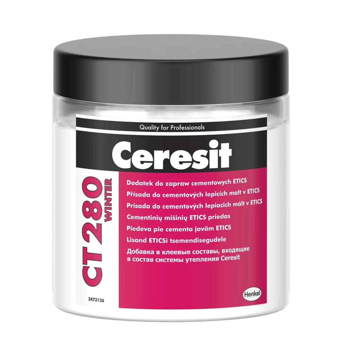 CERESIT CT 280 on mõeldud kasutamiseks külmalisandina hilissügisel ja varakevadel, kui öine temperatuur langeb alla 0 °C. Seda lisatakse CERESIT tsemendipõhistele mineraalsetele liimsegudele ning liim- ja armeerimissegudele (ZS, ZU, CT 83, CT 80, CT 85, CT 87, CT 180, CT 190) sidestumise ja kuivamise kiirendamiseks madala temperatuuri ja kõrge õhuniiskuse puhul. CERESIT toodete pealekandmisel peab õhu ja pinna temperatuur olema üle 0 °C, miinuskraadid on lubatud alles 6-8 h pärast viimase kihi pealekandmist.