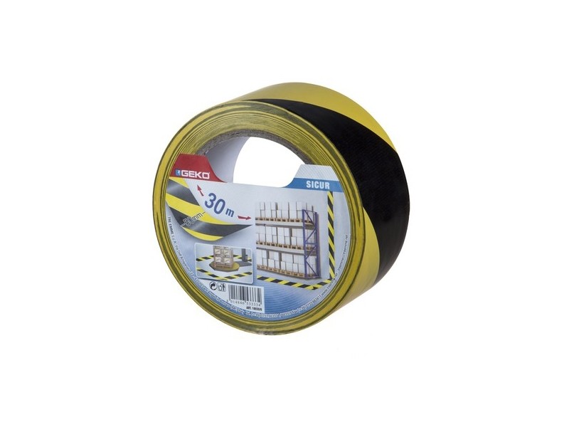 Erinevateks markeerimistöödeks, liimiga PVC-teip. Värv kollane-must. Laius 50mm, rullis 30m.