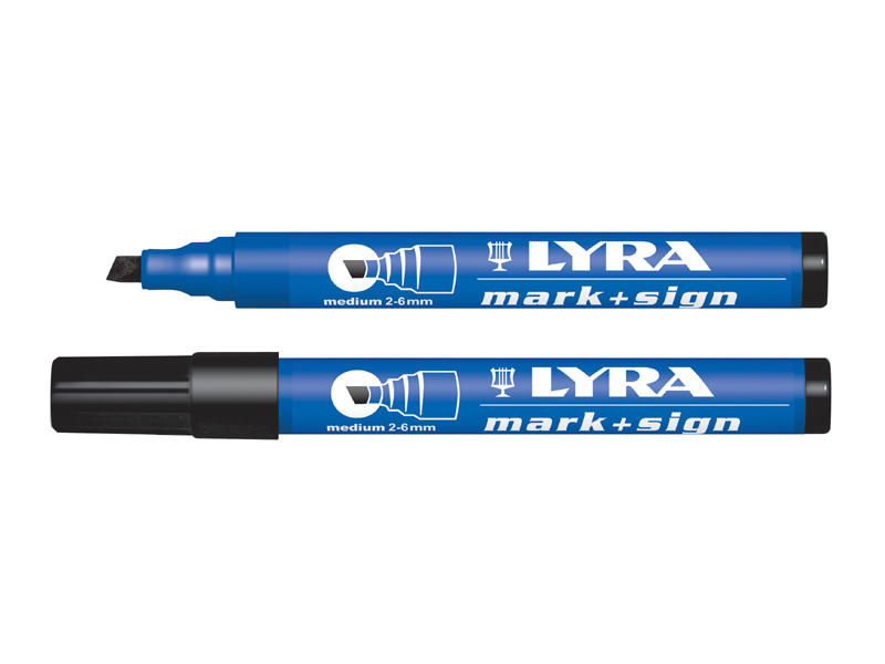 Must marker Lyra, ots 2-6mm. Väga sobiv nii läikivatele kui poorsetele pindadele, kiirelt kuivav ja raskesti eemaldatav.