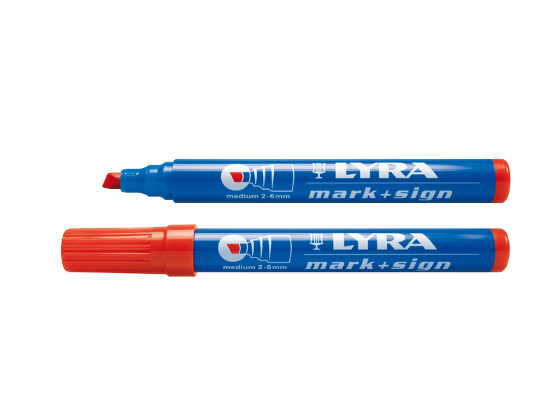 Punane marker Lyra, ots 2-6mm. Väga sobiv nii läikivatele kui poorsetele pindadele, kiirelt kuivav ja raskesti eemaldatav.