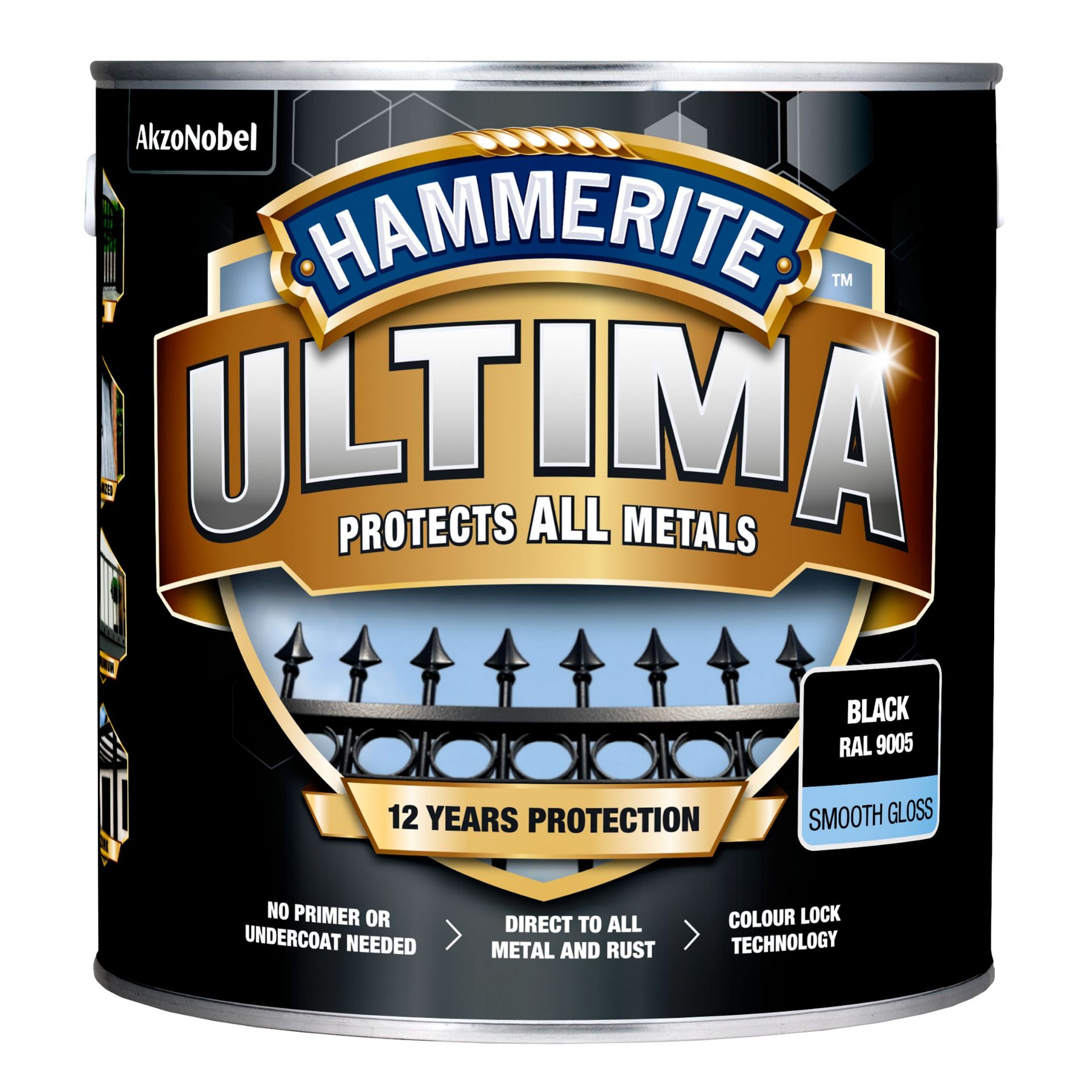 Hammerite Ultima Smooth on uus tase metallivärvide hulgas. Värvi võib kanda otse roostes pinnale, see on väga hea korrosioonikindlusega ning moodustab pinnale kuni 12 aastat kestva kauni ja vastupidava katte.Toodet on mugav kasutada, see ei hakka värvides voolama ning moodustab pinnale sileda ja tugeva kaitsekihi. Värvitud pind on hea kulumis-, kriimustus- ja löögikindlusega. Spetsiaalne Colour Lock tehnoloogia kaitseb pigmente päikesekiirgusest põhjustatud loomuliku värvimuutuse eest, säilitades pikaajaliselt värvi läike ja hoides värvitoone erksatena. Värvitud pind ajas ei kollastu. Toode on kasutusvalmis ning kuivab kiiresti. Värvitud pind talub kuni +80°C kuumust. Toode on saadaval valmistoonidena. Toode on mõeldud kasutamiseks välis- ja sisetööl metallpindade viimistlemiseks, nt postid, aia- ja trepipiirded, garaažiuksed, väravad, vihmaveetorud ja -rennid, õuevalgustid, aiamööbel, erinevad metalltarvikud, jalgrattad, aiakärud.