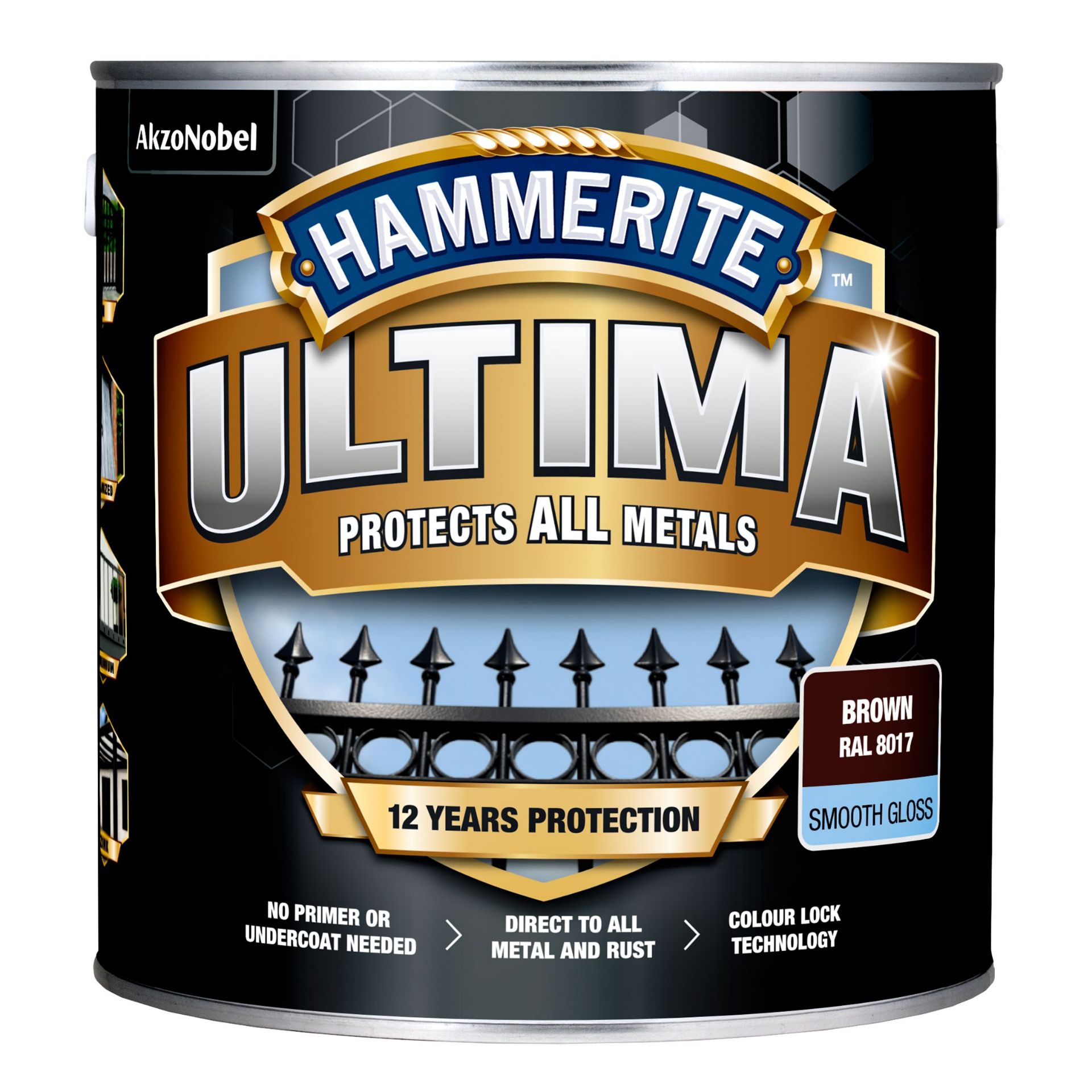 Hammerite Ultima Smooth on uus tase metallivärvide hulgas. Värvi võib kanda otse roostes pinnale, see on väga hea korrosioonikindlusega ning moodustab pinnale kuni 12 aastat kestva kauni ja vastupidava katte.Toodet on mugav kasutada, see ei hakka värvides voolama ning moodustab pinnale sileda ja tugeva kaitsekihi. Värvitud pind on hea kulumis-, kriimustus- ja löögikindlusega. Spetsiaalne Colour Lock tehnoloogia kaitseb pigmente päikesekiirgusest põhjustatud loomuliku värvimuutuse eest, säilitades pikaajaliselt värvi läike ja hoides värvitoone erksatena. Värvitud pind ajas ei kollastu. Toode on kasutusvalmis ning kuivab kiiresti. Värvitud pind talub kuni +80°C kuumust. Toode on saadaval valmistoonidena. Toode on mõeldud kasutamiseks välis- ja sisetööl metallpindade viimistlemiseks, nt postid, aia- ja trepipiirded, garaažiuksed, väravad, vihmaveetorud ja -rennid, õuevalgustid, aiamööbel, erinevad metalltarvikud, jalgrattad, aiakärud.