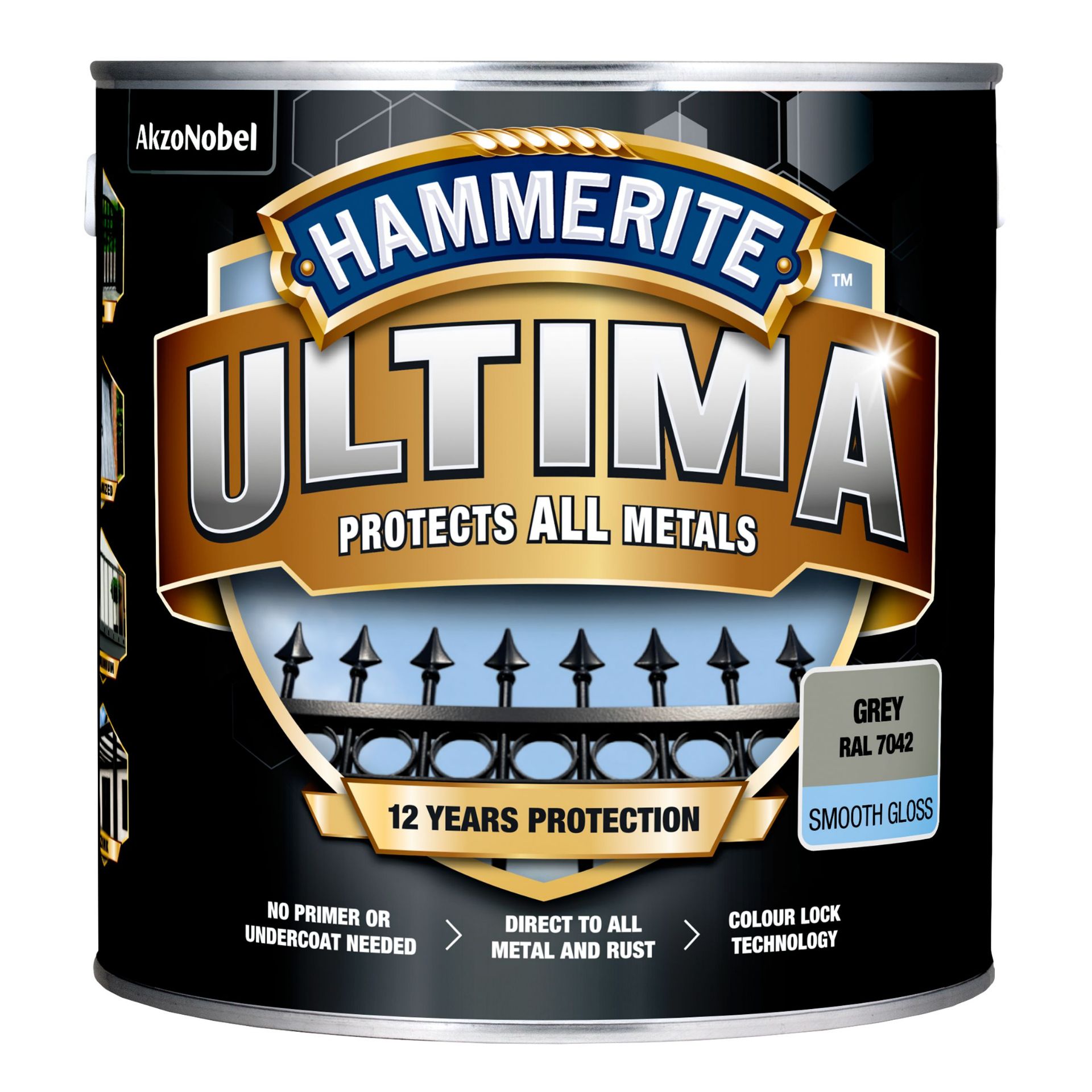 Hammerite Ultima Smooth on uus tase metallivärvide hulgas. Värvi võib kanda otse roostes pinnale, see on väga hea korrosioonikindlusega ning moodustab pinnale kuni 12 aastat kestva kauni ja vastupidava katte.Toodet on mugav kasutada, see ei hakka värvides voolama ning moodustab pinnale sileda ja tugeva kaitsekihi. Värvitud pind on hea kulumis-, kriimustus- ja löögikindlusega. Spetsiaalne Colour Lock tehnoloogia kaitseb pigmente päikesekiirgusest põhjustatud loomuliku värvimuutuse eest, säilitades pikaajaliselt värvi läike ja hoides värvitoone erksatena. Värvitud pind ajas ei kollastu. Toode on kasutusvalmis ning kuivab kiiresti. Värvitud pind talub kuni +80°C kuumust. Toode on saadaval valmistoonidena. Toode on mõeldud kasutamiseks välis- ja sisetööl metallpindade viimistlemiseks, nt postid, aia- ja trepipiirded, garaažiuksed, väravad, vihmaveetorud ja -rennid, õuevalgustid, aiamööbel, erinevad metalltarvikud, jalgrattad, aiakärud.
