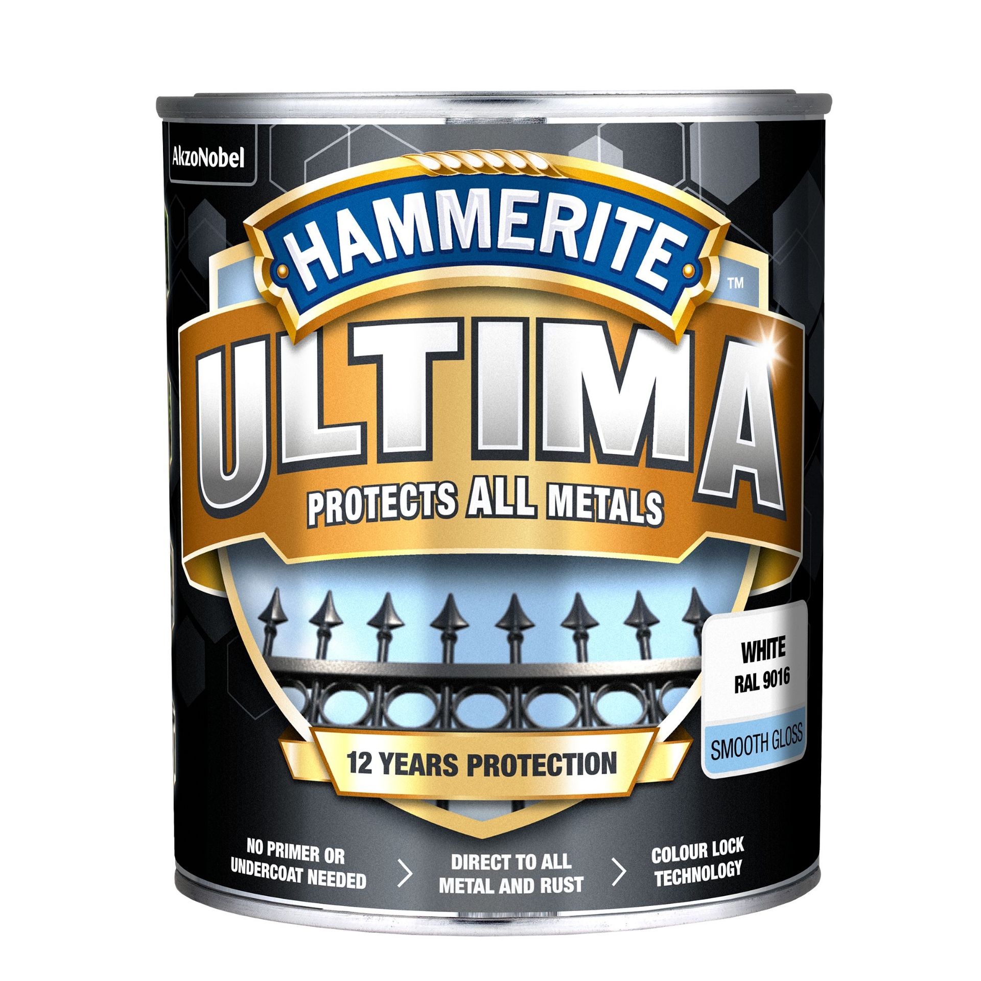 Hammerite Ultima Smooth on uus tase metallivärvide hulgas. Värvi võib kanda otse roostes pinnale, see on väga hea korrosioonikindlusega ning moodustab pinnale kuni 12 aastat kestva kauni ja vastupidava katte.Toodet on mugav kasutada, see ei hakka värvides voolama ning moodustab pinnale sileda ja tugeva kaitsekihi. Värvitud pind on hea kulumis-, kriimustus- ja löögikindlusega. Spetsiaalne Colour Lock tehnoloogia kaitseb pigmente päikesekiirgusest põhjustatud loomuliku värvimuutuse eest, säilitades pikaajaliselt värvi läike ja hoides värvitoone erksatena. Värvitud pind ajas ei kollastu. Toode on kasutusvalmis ning kuivab kiiresti. Värvitud pind talub kuni +80°C kuumust. Toode on saadaval valmistoonidena. Toode on mõeldud kasutamiseks välis- ja sisetööl metallpindade viimistlemiseks, nt postid, aia- ja trepipiirded, garaažiuksed, väravad, vihmaveetorud ja -rennid, õuevalgustid, aiamööbel, erinevad metalltarvikud, jalgrattad, aiakärud.