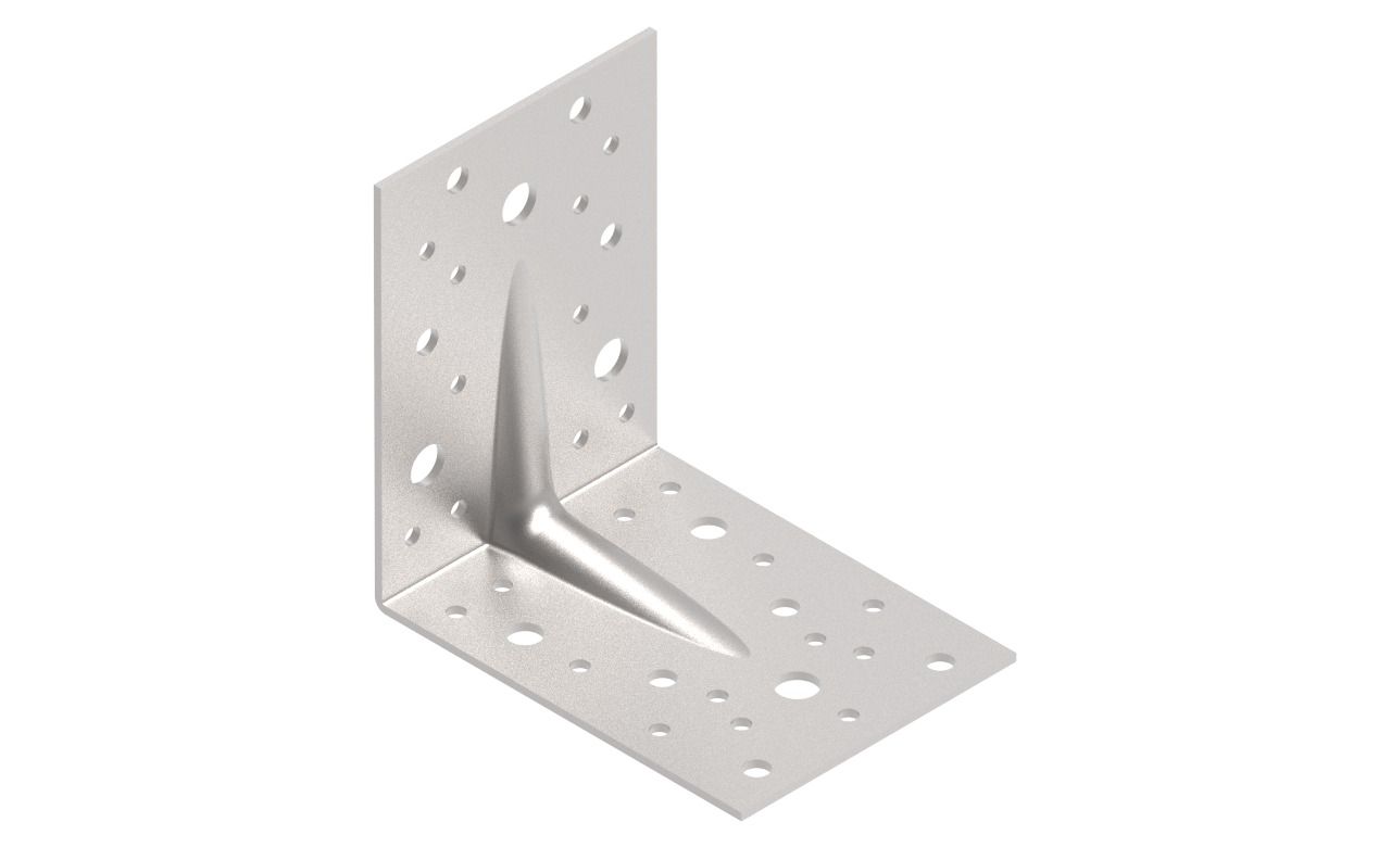 Võrdkülgne tugevdatud naelutusnurgik sobib erinevate puit/puit ja puit/kivi tüüpi kinnituste- ja konstruktsioonide koostamiseks.