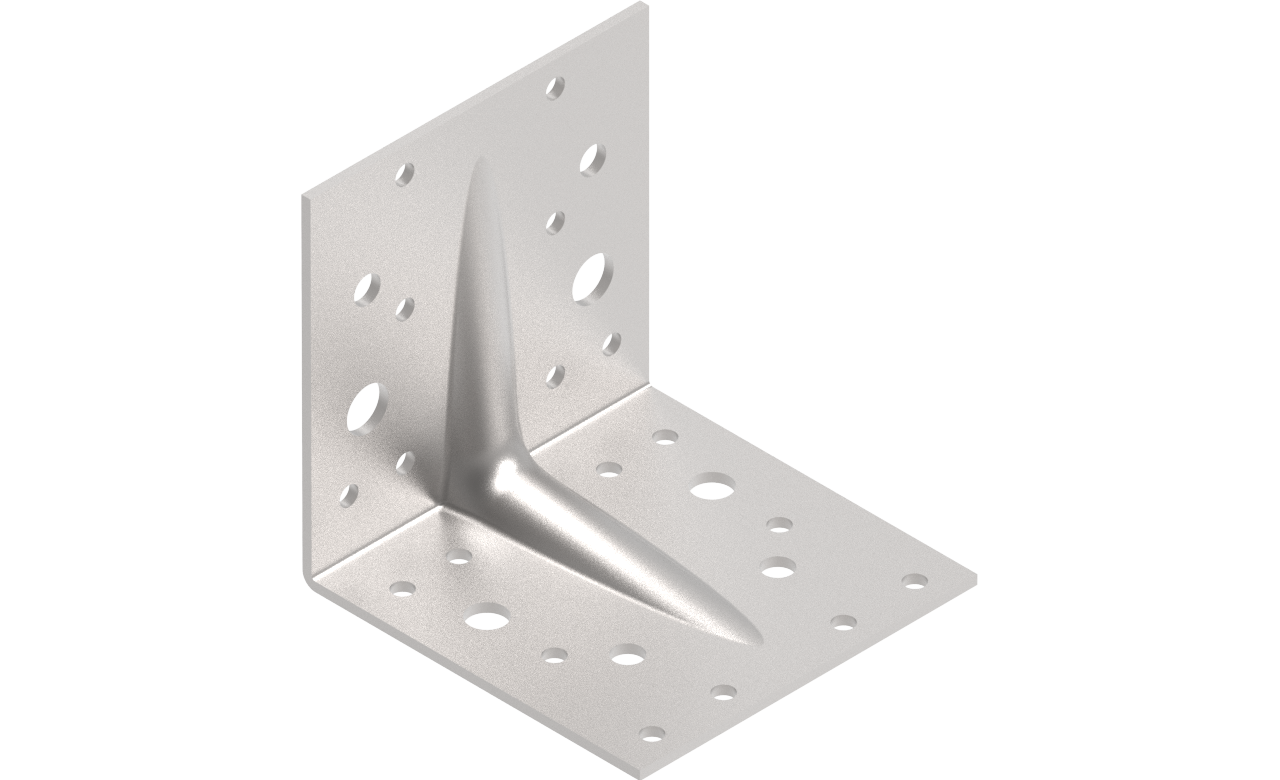 Võrdkülgne tugevdatud naelutusnurgik sobib erinevate puit/puit ja puit/kivi tüüpi kinnituste- ja konstruktsioonide koostamiseks.