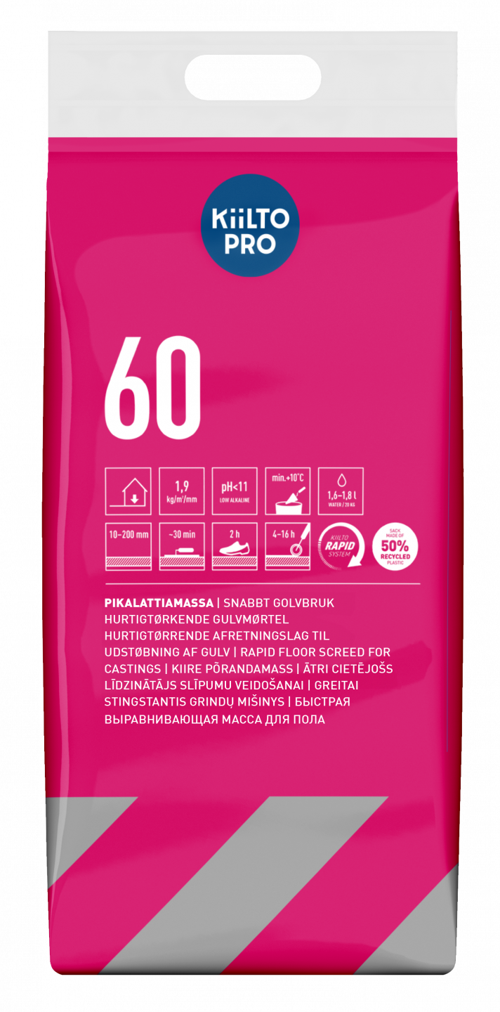 Kiirestikõvenev ja -kuivav põrandamass põrandate valamiseks, aukude täitmiseks ja kallete tegemiseks siseruumides. u 11 l massi kotis. Madala leeliselisusega, tsemendibaasil.