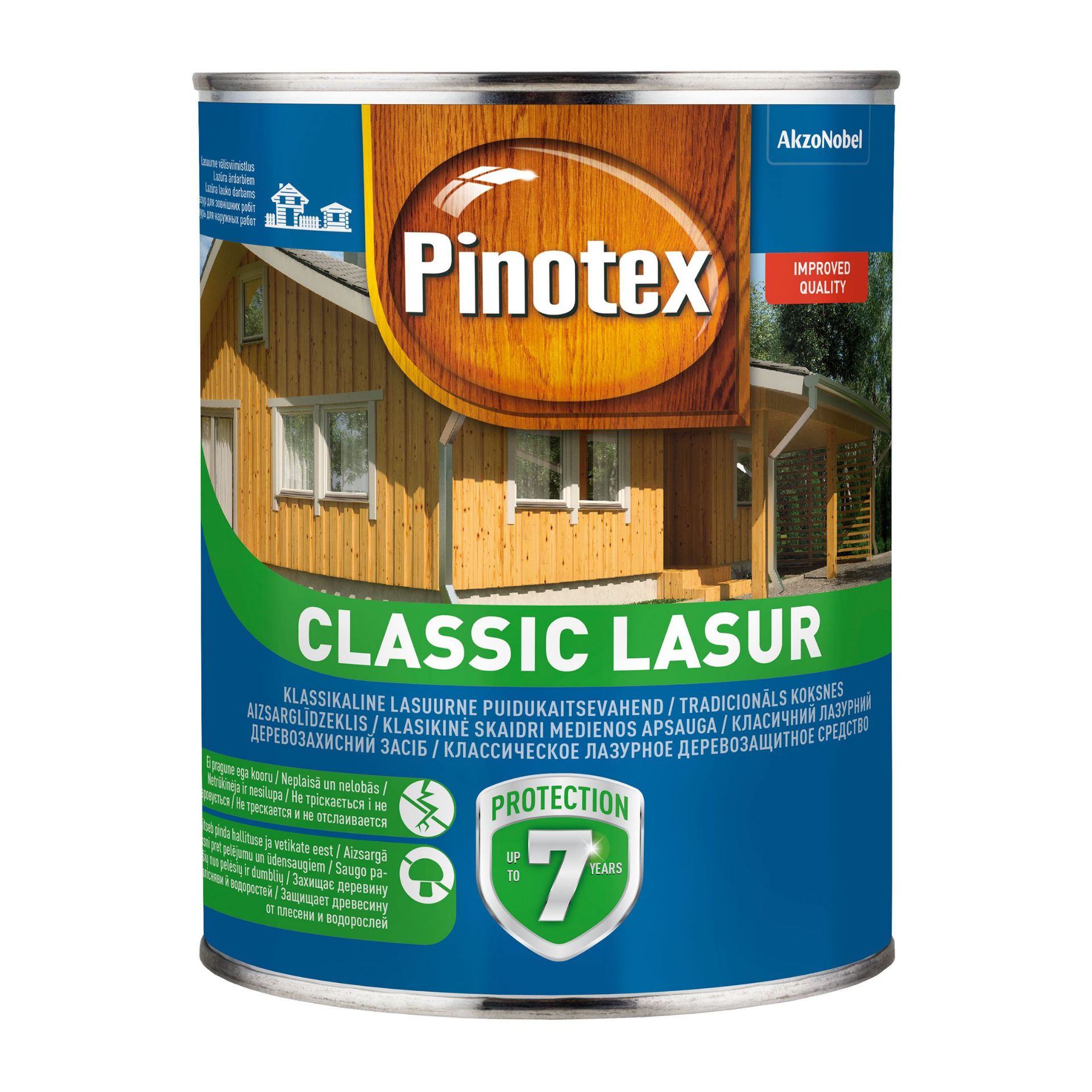 Pinotex Classic Lasur on kasutusvalmis puitpindade kaitsevahend, mis põhineb keskkonda säästval AE tehnoloogial. Toode sisaldab toimeaineid ennetamaks hallituse ja vetikate levikut pinnal ning kaitseb tulemuslikult ilmastikumõjude eest. Dekoratiivne Pinotex Classic Lasur rõhutab ja väärtustab puidu loomulikku tekstuuri. Toode sobib kasutamiseks süsteemselt koos puidukaitsekrundiga. Pinotex Classic Lasur on hästi imenduv ja mugavalt pinnale kantav. Moodustab mati, õhukese, kuid vastupidava kattekile.
