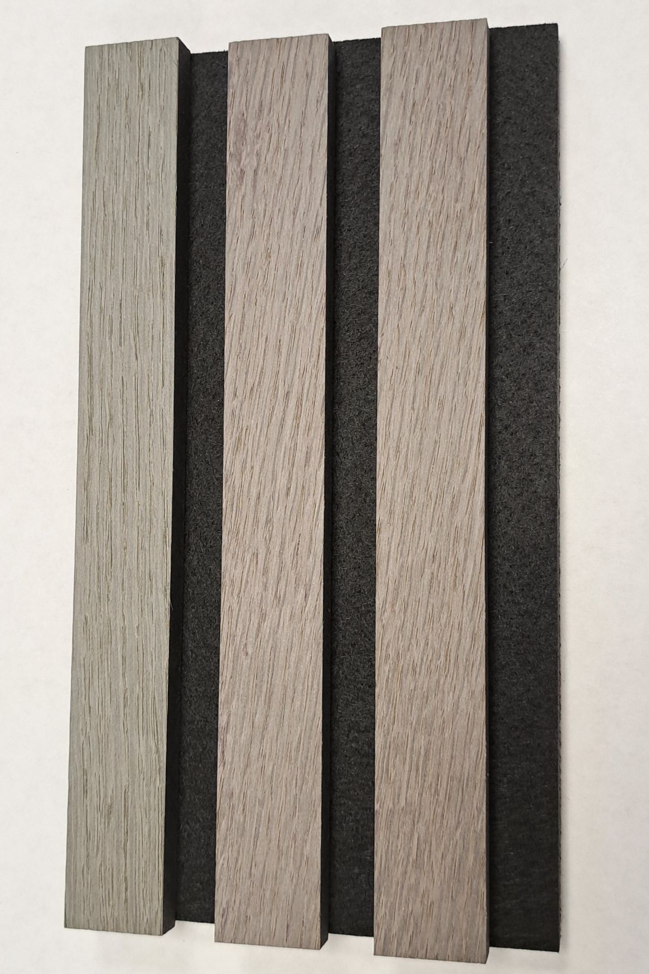 Akustiline ribipaneel 22x600x2400mm on tehtud musta vildiga, musta MDF paneeliga ja tumehalli tamme spooniga. Natruraalne spoon jätab naturaalse ilme ja akustilised paneelid neelavad helilaineid, vähendades ruumis kaja. Paneelid on kindlate suurustega, aga neid saab projekti raames lõigata omale parajaks. Laudasi on võimalik lõigata saega ja vilti on võimalik lõigata noaga.