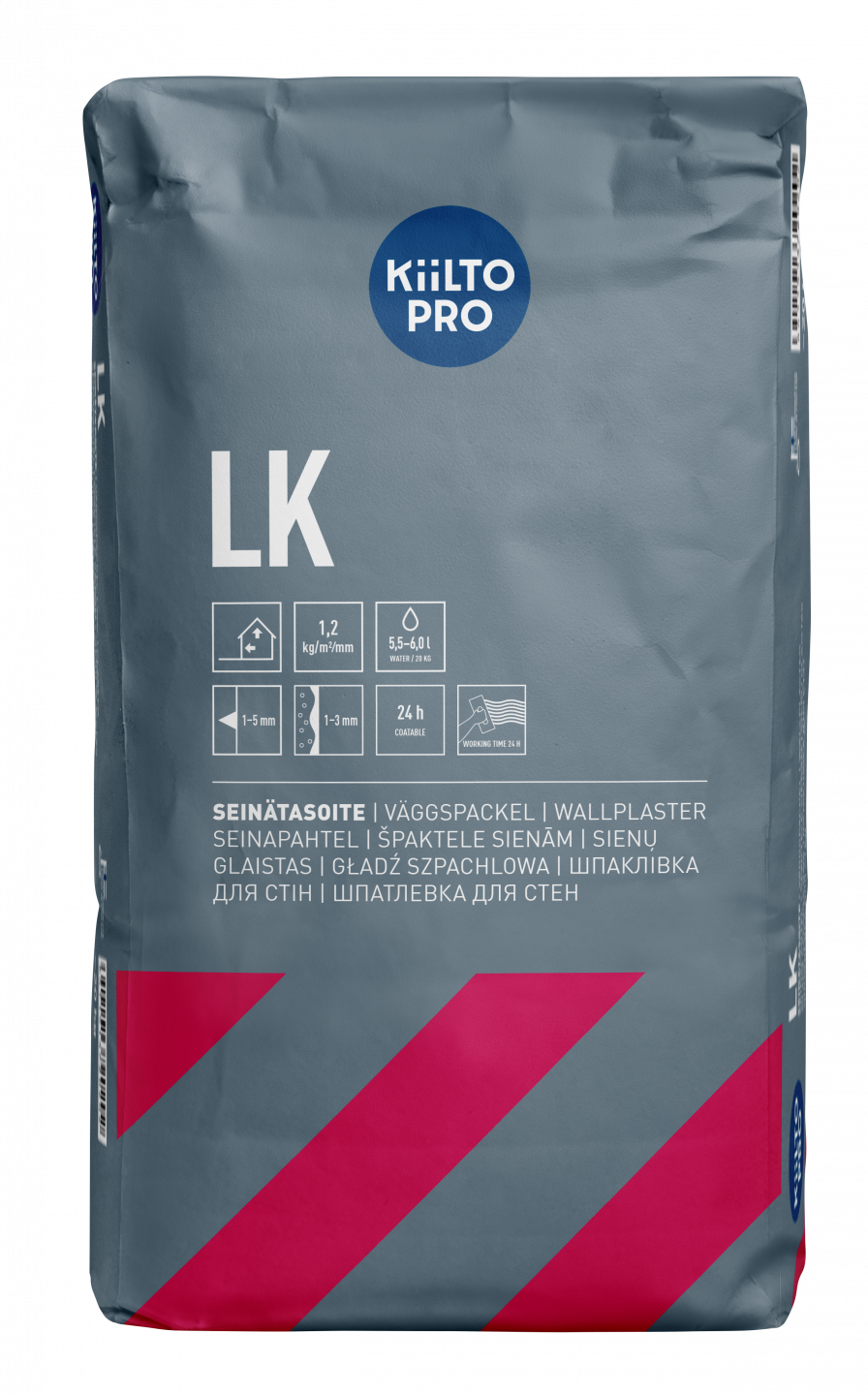 Kiilto LK on seinapahtel kuivade siseruumide seina- ja laepindadele. Karedad pinnad tuleb eelnevalt pahteldada seinapahtliga Kiilto SK või Kiilto TT. Pinna peenpahtelduseks kasutada seinapahtlit Kiilto LH. Viimistletud pinna võib üle tasandada või värvida. Ei sobi kasutamiseks keraamiliste plaatide all või vinüülkatete aluspinnaks.