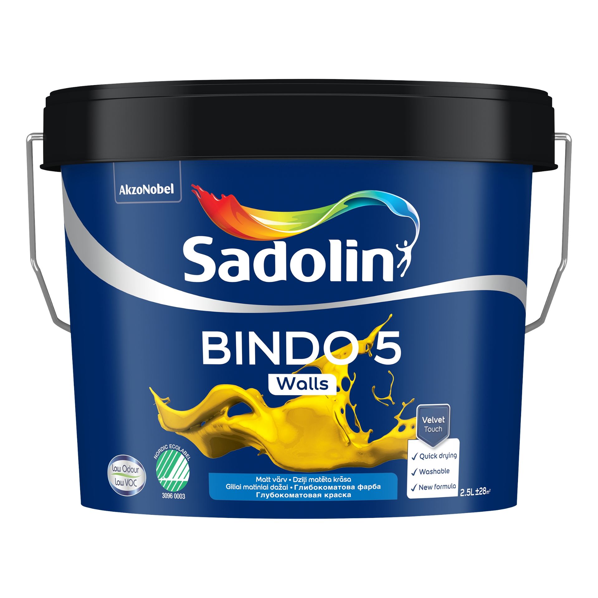 Sügavmatt, ühtlase konsistentsiga emulsioonvärv seintele. Värvikiht näeb välja sametine, lisab seintele elegantsi. Kiiresti kuivav, kergesti kasutatav lihtsate töövõtetega on võimalik saavutada professionaalse välimusega tulemus. Värvitud pind on pestav ja kergesti hooldatav. Võib valida tuhandete värvide hulgast. Värv Bindo 5 on nõrga lõhnaga ja sisaldab väga vähe lenduvaid orgaanilisi ühendeid (LOÜd). Lisaks on talle omistatud Põhjamaade Luigemärgi (Nordic Swan) sertifi kaat, mis tagab vastavuse rangetele keskkonnastandarditele. Bindo 5 värv on mõeldud elumajade ja ühiskondlike ruumide seinte värvimiseks. Sobib uutele ja varem värvitud krohvitud, betoon- ja pahteldatud pindadele ning kipsplaatide värvimiseks.