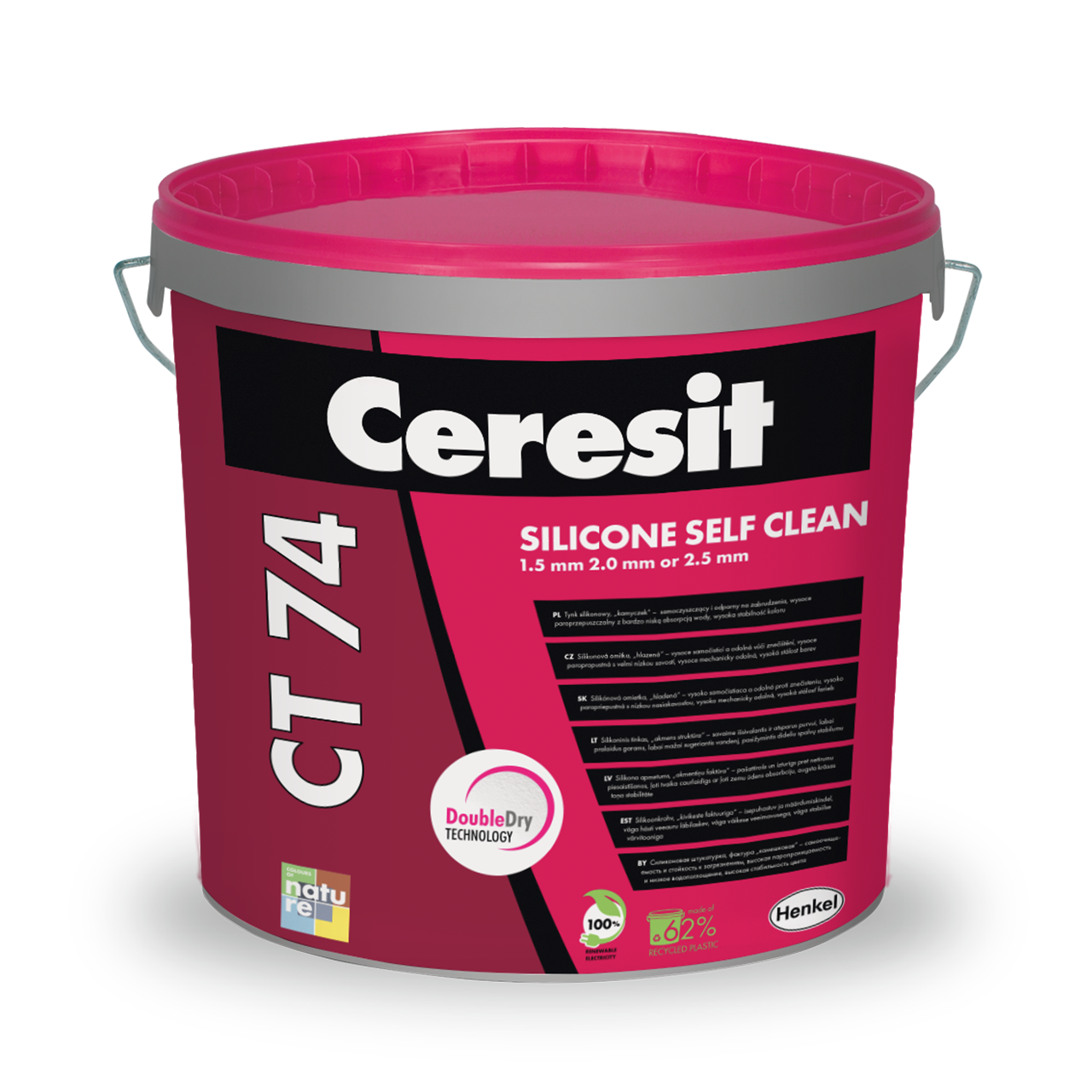 CERESIT CT 74 dekoratiivkrohvi kasutatakse õhukese kihi moodustamiseks betoon-, kips- ja puitlaastplaatpindadele, kipskartongplaatidele jne. Soovitame kasutada CT 74 fassaadikrohvina CERESIT SILS (krohvitud väliste soojusisolatsiooni liitsüsteemide) puhul EPS- (vahtpolüstüreen-) ja mineraalvillplaatide kasutamisel. CT 74 soovitatakse suurt veeauru läbilaskvust nõudvate vaheseinte jaoks. CT 74 on kaitstud bioloogiliste mõjurite (seened, hallitus ja vetikad) eest.