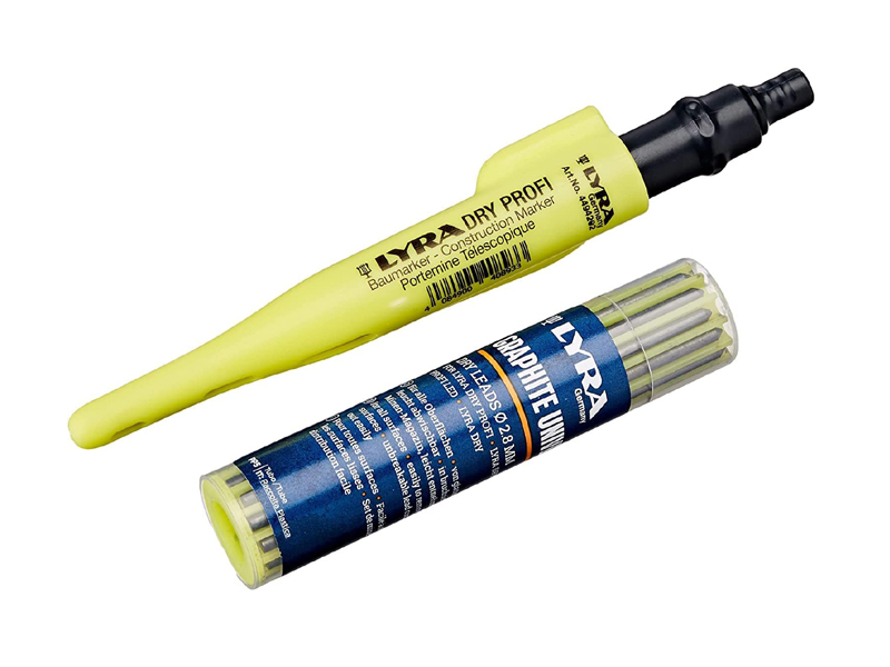 Täitepliiats "Lyra-Dry" Pro. Täpseks märkimiseks erinevatel pindadel (puit, metall, plast, klaas, keraamika jne), grafiitsüdamik. Kerge nupuvajutusega saab südamikku välja poole, pliiatsi korpus on varustatud südamiku teritajaga. Pliiatsiga on kaasas varusüdamikud (12tk).