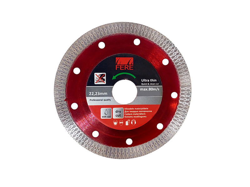 Ultra õhuke teemant-lõikeketas. Keraamika, glasuurplaadi, marmori, graniidi, katusekivi, tellise lõikamiseks. Kiire ja puhas lõige. Ø125mm, siseava Ø22,23mm. Kõrge teemandisisaldusega lõikekiht. Kuivalt lõigates jahutada ketast iga 60-80 sek. lõikamise järel. Veega lõigates on lõikeaeg piiramatu. Ketast ei tohi kasutada lihvimiseks, liivakivi ja asfalti lõikamiseks.