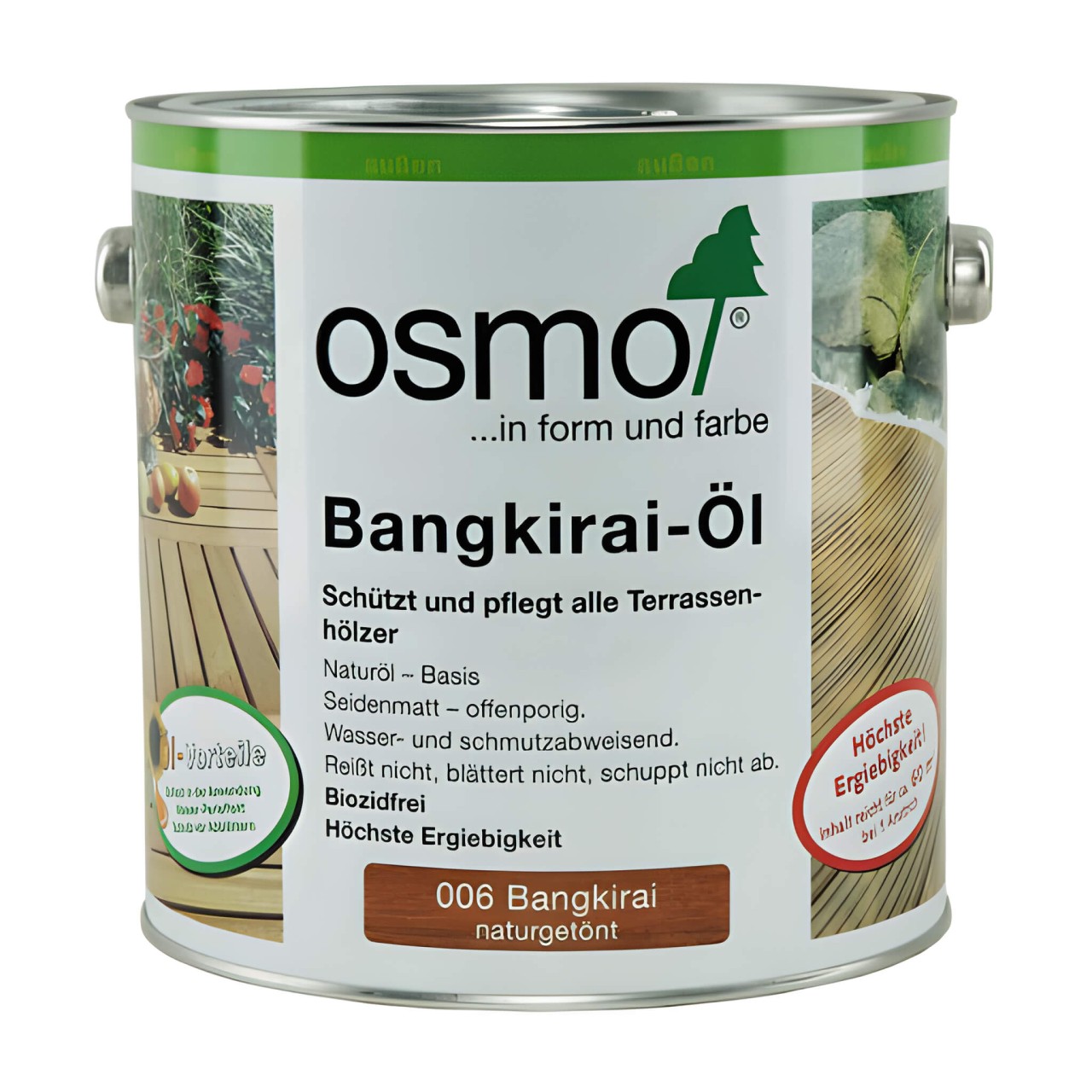 Osmo terrassiõlid kaitsevad puitterrasse, aiamööblit ja vaheseinu, mis on valmistatud okas- ja väärispuidust, nt. immutatud mänd, Douglase Kuusk, Seeder, Tamm või Bangkirai - sobib ka Tiigi, Eukalüpti ja muude eksootiliste puiduliikide viimistlemiseks. Mikropoorne pind võimaldab puidul hingata ning vähendab puidu pundumist ja kokkutõmbumist. Vetthülgav, ilmastiku- ja UV kindel* viimistlus ei pragune ega kooru (* värvitu 007 on ilma UV-kaitseta). Värskendamiseks kanda pinnale uus õhuke kiht õli (ei vaja eelnevat lihvimist). Lihtne ja mugav peale kanda, ei moodusta kilet.