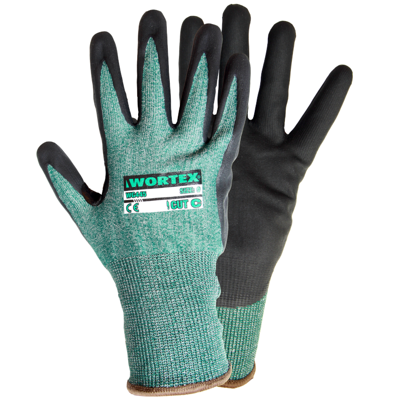 Wortex 445 õhukesed lõikekindlad kindad on elastsed ja mugavad kõrgtehnoloogilisest kiududest valmistatud kindad, lõikekindlustase C, peopesa on kaetud õhukese hingava nitriiliga, nitriilvahust kate tagab hea haarde ja kaitseb hästi mehhaanilise kulumise eest, lisatugevus pöidla ja nimetissõrme vahel, kasutusala kuiv keskkond, montaažitööd, ehitus, remondi ja metallitööd.