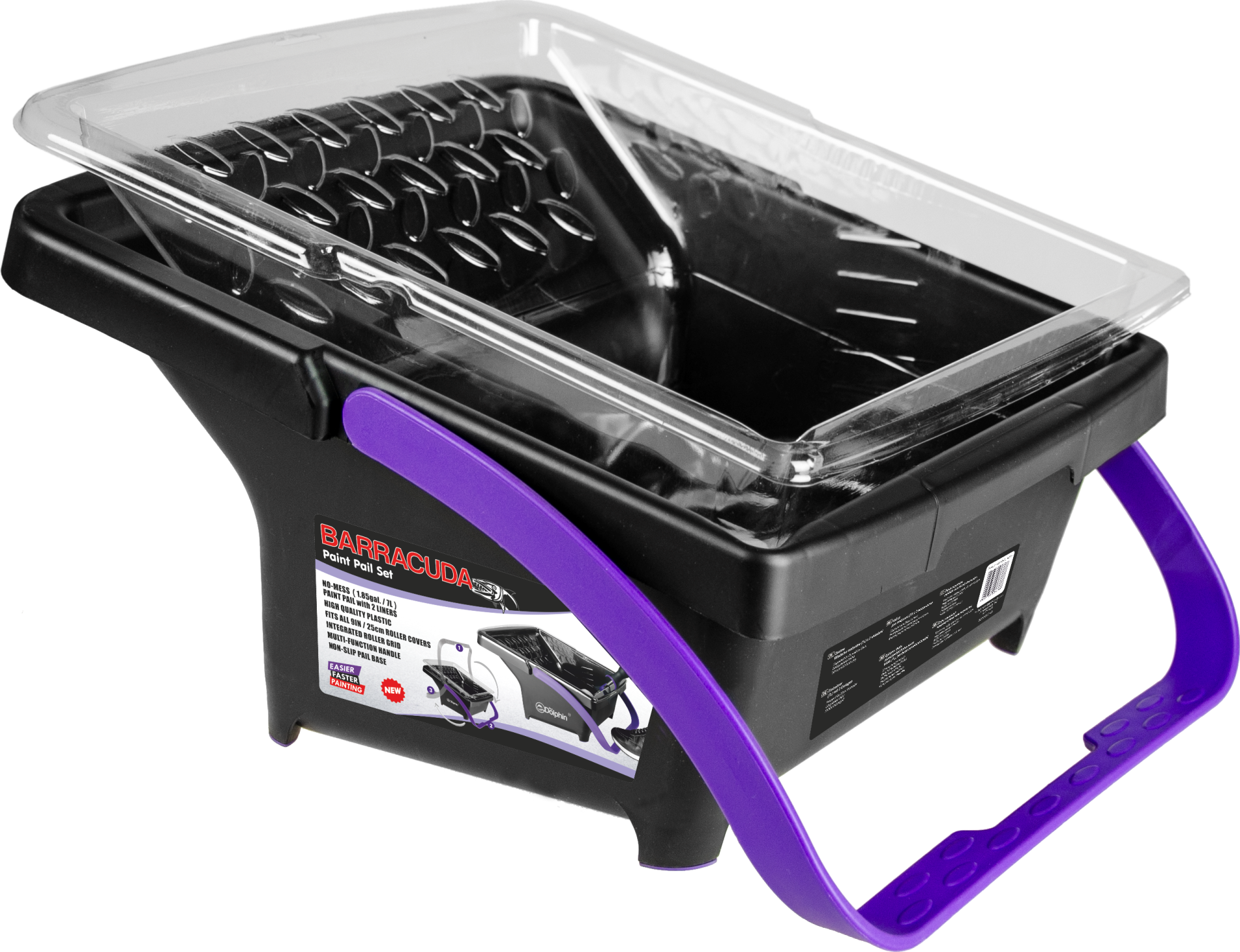 Värvivann Barracuda 9 liitrit + 2 vahetatavat värvivanni sisu. Värvivannil on 3 asendiga reguleeritav käepide ja libisemist takistavad kummist jalad. Lisaks, värvirulli hoidik mis hoiab käepideme puhtana. Materjal on vastupidav kahjustustele ja pragunemisele ning koos sisseehitatud perforatsioonidega värvi äravooluks.