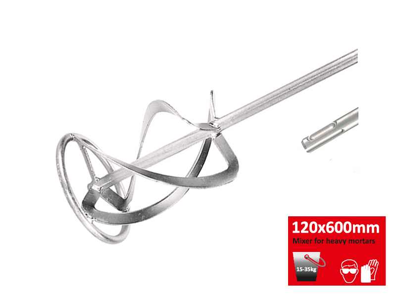 Spiraalvispel Ø120mm, pikkus 600mm. Sobib värvi ja vedelate materjalide segamiseks. SDS-kinnitus, kasutamiseks (aku-)/elektritrelliga. Max. 35kg