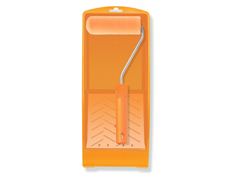 Lakirulli komplekt (rull, käepide, kauss). Vee baasil lakkidele, email- ja mööblivärvidele, siledatele aluspindadele. Helbeline vahtkumm rull, ümara otsaga, jätab siledapinnalise viimistluse.