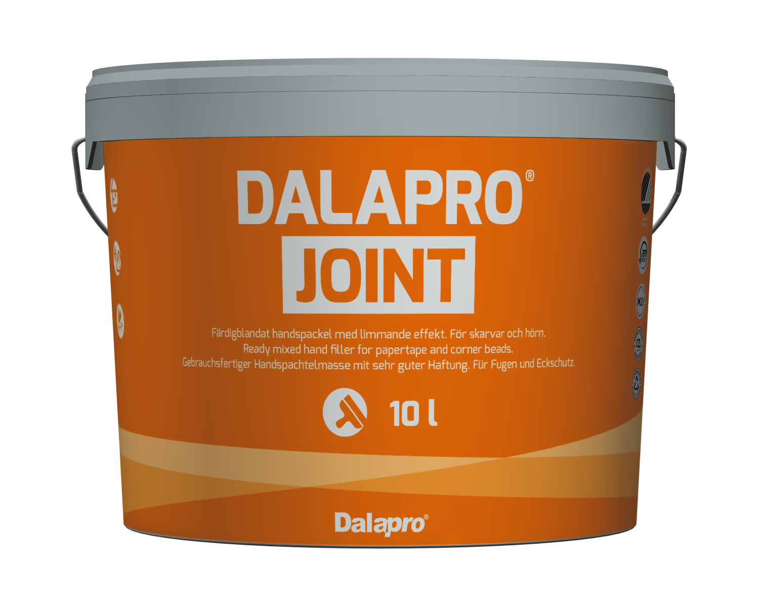 Dalapro Joint on helehall kasutusvalmis käsipahtel. Toode on spetsiaalselt mõeldud kipsplaatide ja betoonpindade vuukide täitmiseks siseruumides, kasutades paberteipi ja nurkade tugevdusi. Sellel tootel on Nordic Swan Ecolabel märgis. Kasutamiseks kandke pahtel käsitsi puhtale, kuivale ja tugevale pinnale. Tööde teostamise minimaalne temperatuur on +5°C. Kui pahtel on kuivanud, lihvige pind siledaks, kasutades liivapaberit terasuurusega 120–150. Lihvimisel kasutage silmade ja hingamisteede kaitsevahendeid. Enne järgmise tööetapi alustamist puhastage pind lihvimistolmust. Pahteldatud pinnad tuleb enne tapeetimist või lõppviimistlust kindlasti kruntida.